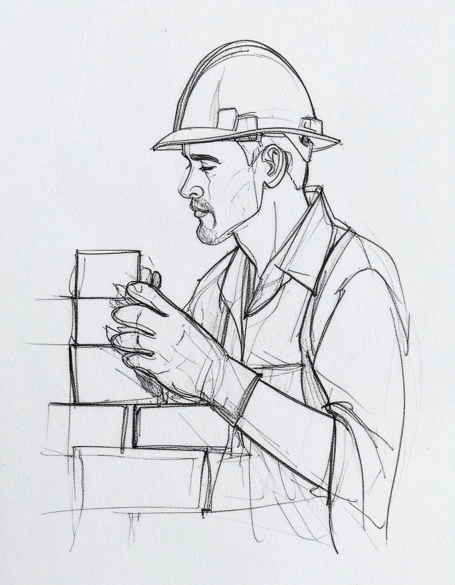 Maçon empilant des briques